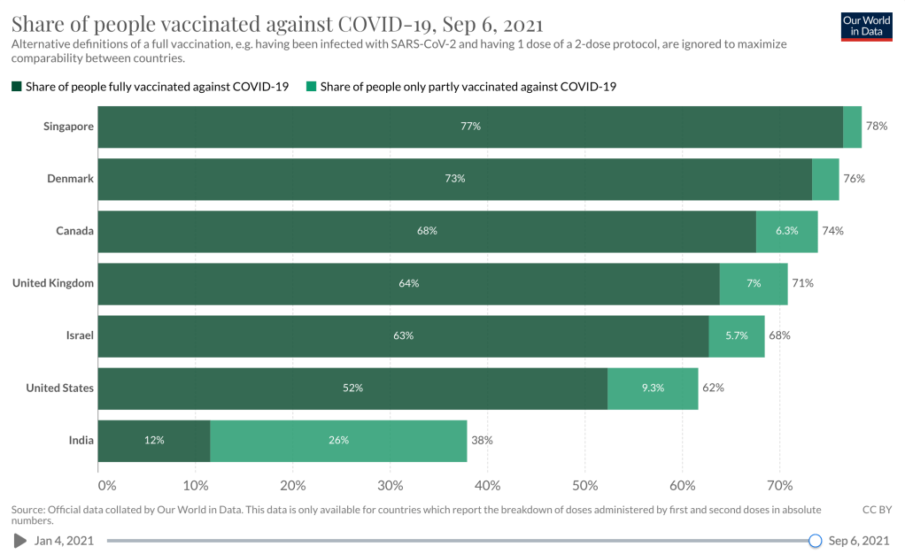 Canada and UK have achieved substantial vaccine penetration. There is drastic reduction in serious cases and hospitalisation of Covid patients among the fully vaccinated population. In US the number of admission is mainly among the unvaccinated. President Biden has called this as the Pandemic of the Unvaccinated.