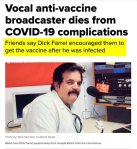 Dick Farrel (USA): A Vocal Anti-vaccine TV host who urged his listeners not to be vaccinated has died in Covid-19 on 4th August at 65. The link for several Anti Vaxx and Anti- Mask activists who have succumbed to this virus is given below.