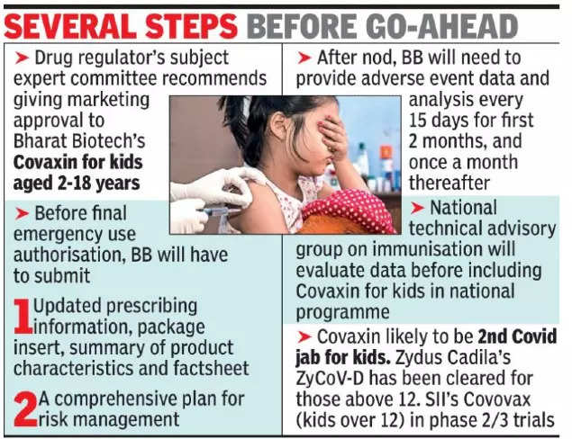 | 2. | Covaxin ( Bharat biotech) | Killed Whole virion | Oct ‘21 | 2-18 | 2 doses PFS 0.5 ml | Restricted use in emergency situations subject to certain conditions | |