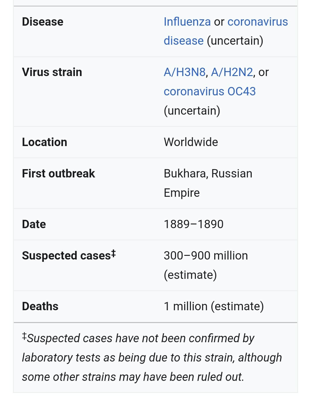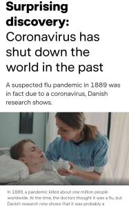 It is now established that the 1889 Russian flu pandemic was caused by the Coronavirus OC43 which now remains in our nose and causes mild common cold.