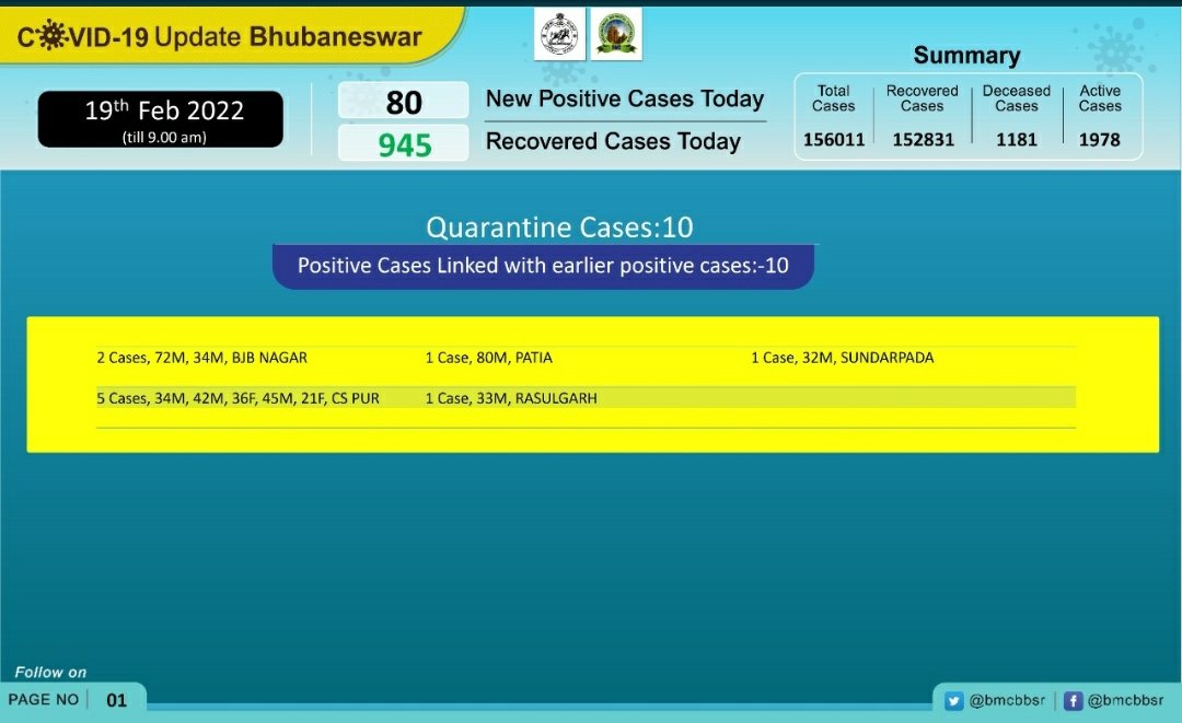 - Case number in Bhubaneswar has also fallen TWO DIGITS: 80