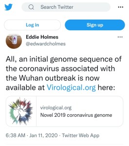The Genome sequence of the Covid19 virus was available in public domain in January of 2020. Both Moderna and BioNTech were ready with prototype vaccines within 45 days, by February end. The phased Clinical Trials took a total 6-7 months and after Billions of dollars pumped in by the manufacturers, a vaccine was injected to shoulders of only on December 8,2020. Below is the twitter image dated 11 January, 20202 telling the whole world about the genome sequence of the Covid virus.