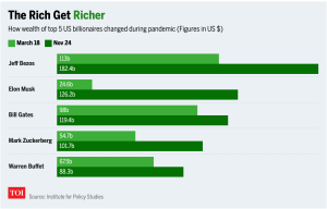“..Twenty million Americans lost their job in the pandemic. At the same time, 650 billionaires of America saw their net worth increase by more than 1 trillion dollars.”