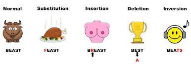 When only one letter is changed in our genetic code it is called a Point Mutation. Here is an example how an English word can change with change of just one alphabet.