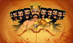 As I turned into the main road from my lane, a newly erected huge bill board blocked my view. A huge picture of Dashanan looked straight into my eyes with his mighty arrows aimed straight into my Ajna Chakra ( at the centre of my forehead.)
